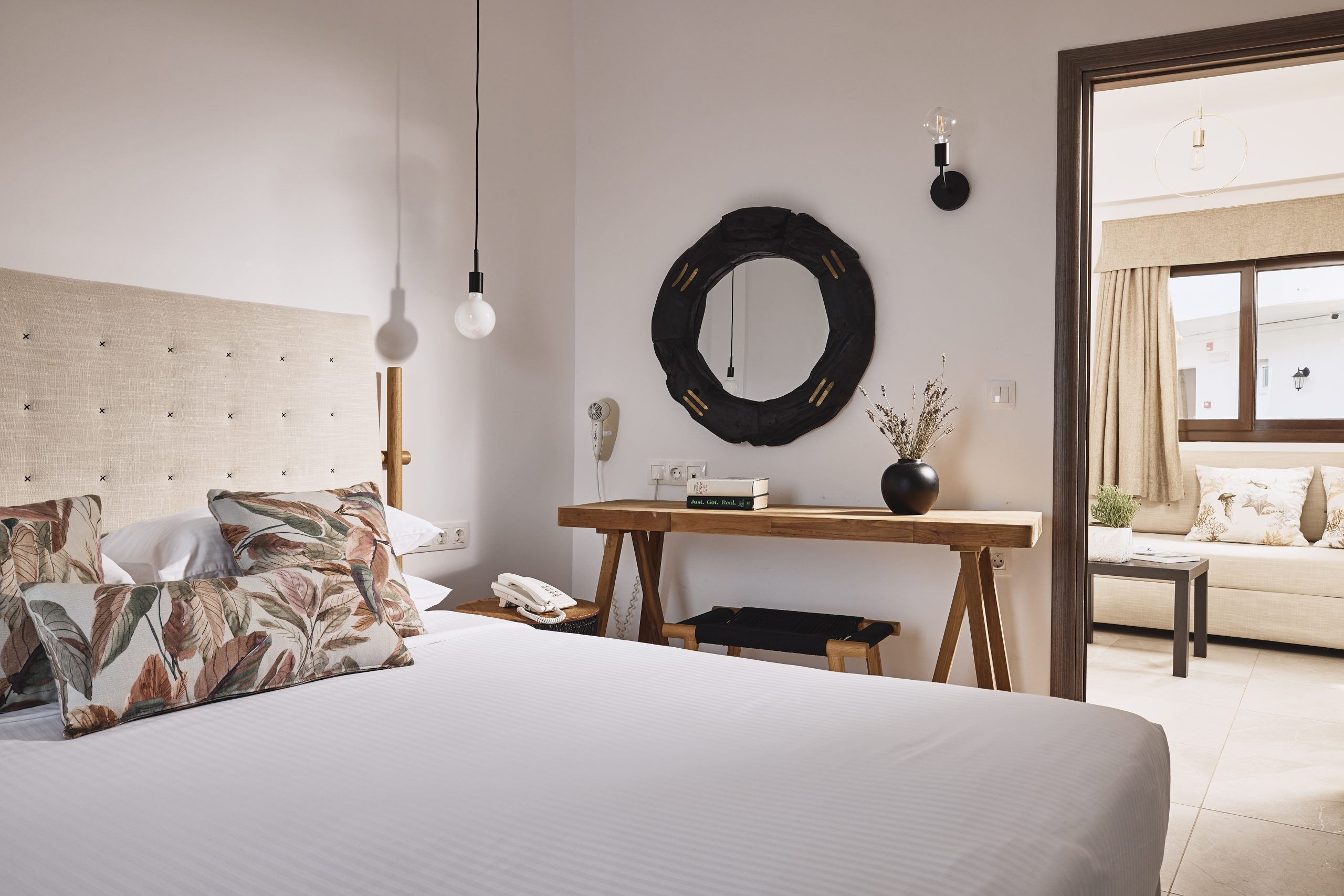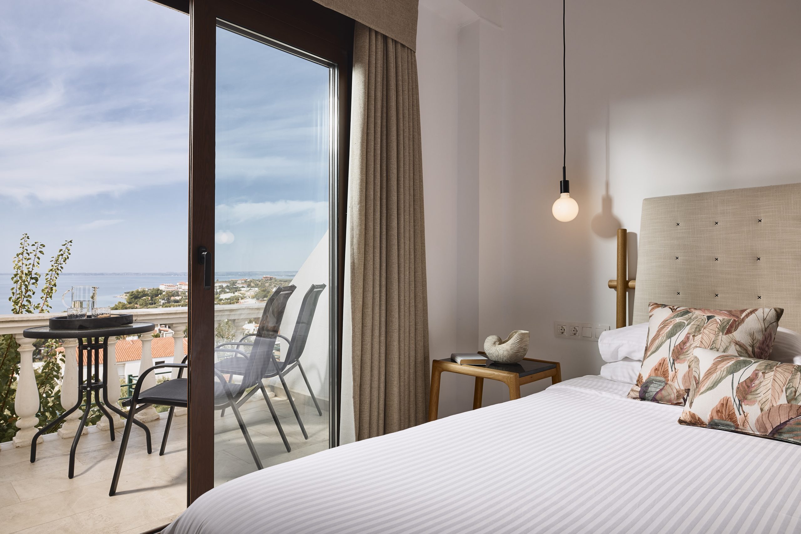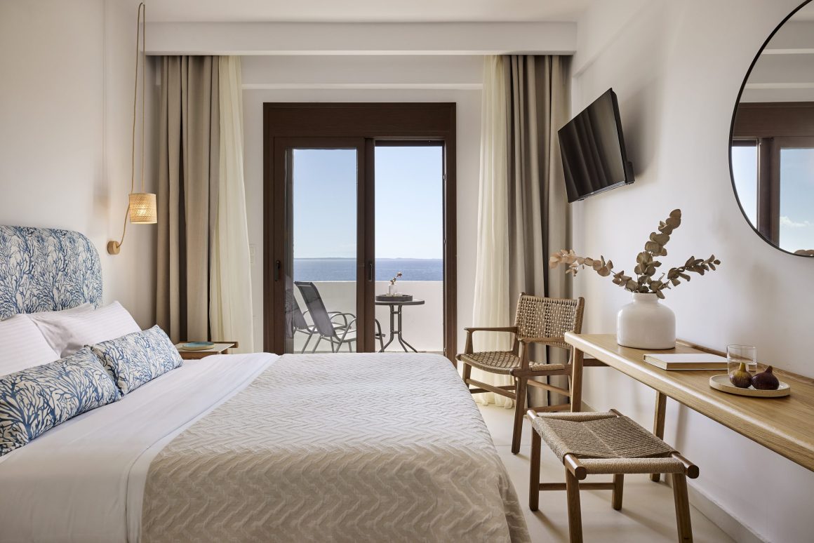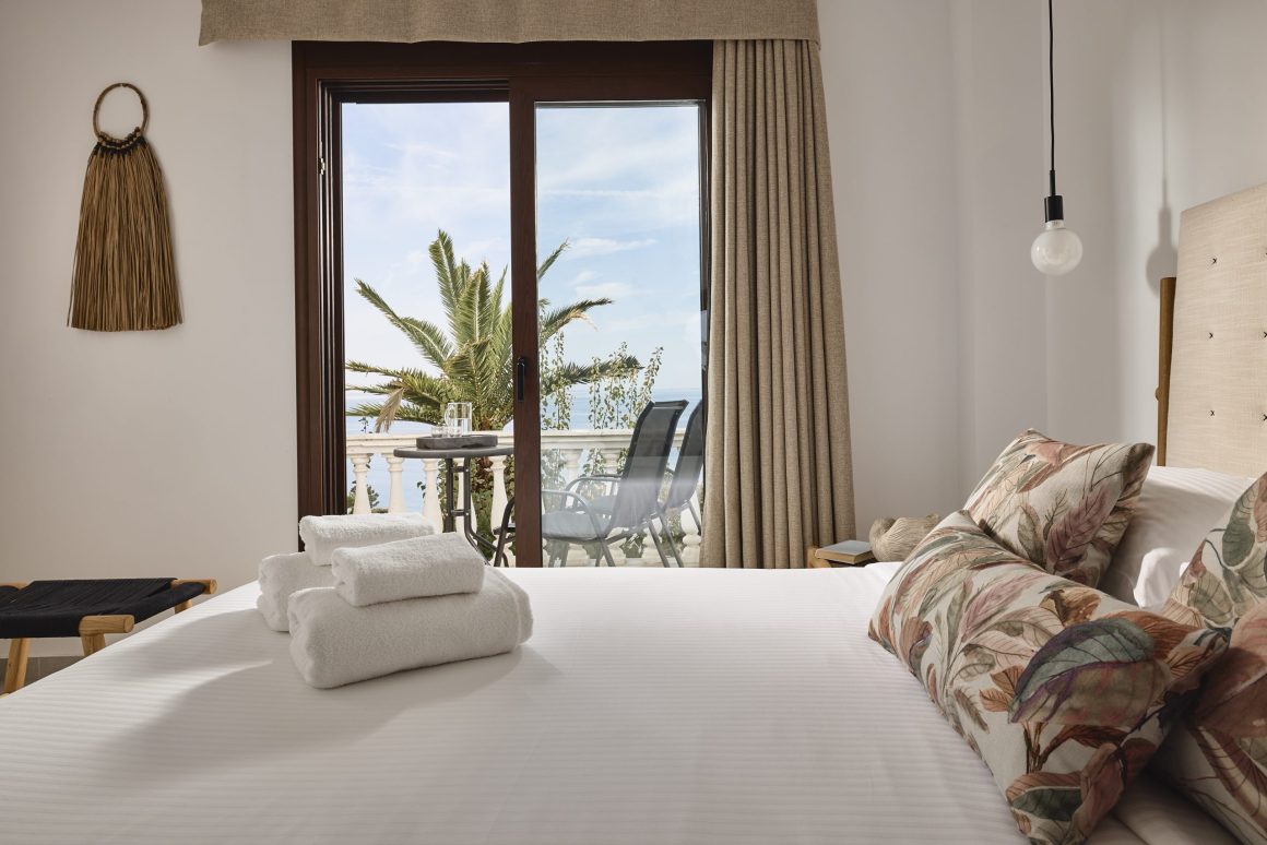 Ideal for families, this room type features two bedrooms for added privacy. The first bedroom includes one queen-size bed, and the second bedroom features two twin-size beds. These spacious 42sqm rooms include a private balcony with stunning views of the Toroneos Gulf or garden view.